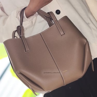 Elegance in its most refined form. Cyme Mini Tote hadir dengan desain yang sophisticated dan crafted dari textured leather berkualitas tinggi yang memberikan kesan mewah sekaligus timeless. Warna taupe yang lembut dan netral menjadikannya pilihan sempurna untuk melengkapi berbagai gaya, dari tampilan kasual yang chic hingga look yang lebih formal.