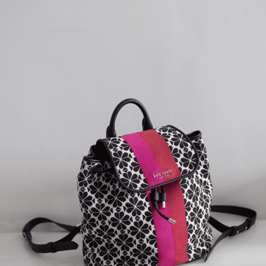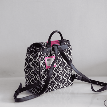 KS Flower Jacquard Stripe Sinch Medium Flap Black Multi adalah tas ikonik Kate Spade dengan perpaduan desain floral jacquard yang elegan dan detail stripe khas yang memberikan sentuhan modern. Ukuran 26x26x15 cm menjadikannya tas medium yang praktis, cocok digunakan untuk aktivitas harian maupun acara spesial.